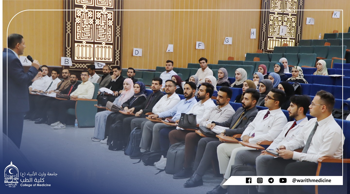 Under the patronage of the President of Warith Al-Anbiya University, Dr. Ibrahim Saeed Al-Hayawi, and the supervision of the Dean of the College of Medicine, Professor Dr. Ali Abdul Saadoun Al-Ghazi, the College held an awareness seminar entitled: