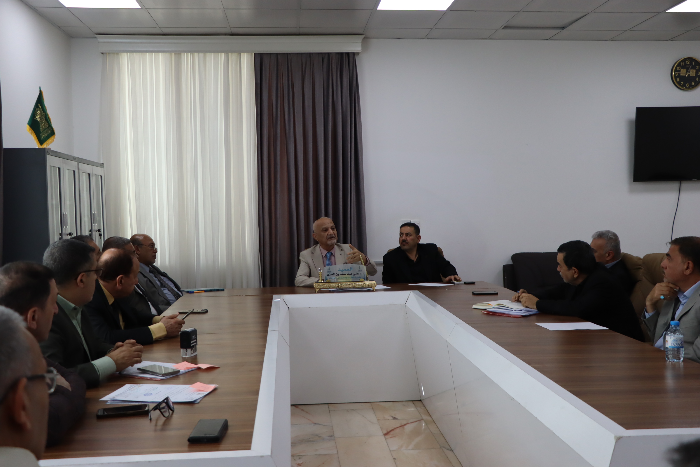 In the presence of Professor Dr. Ali Abdul Saadoun Al-Ghazi, Dean of the College of Medicine, Dr. Laith Mohammed Al-Husseini, Assistant Dean for Scientific Affairs, Dr. Anwar Al-Dahhan, Assistant Dean for Administrative Affairs, and the heads of the various departments, the esteemed College Council held its periodic meeting to discuss updating the College's vision, mission, and objectives to align with the continuous development in medical education and contribute to preparing a distinguished generation of physicians possessing competence, skill, and knowledge coupled with compassion and high moral character.